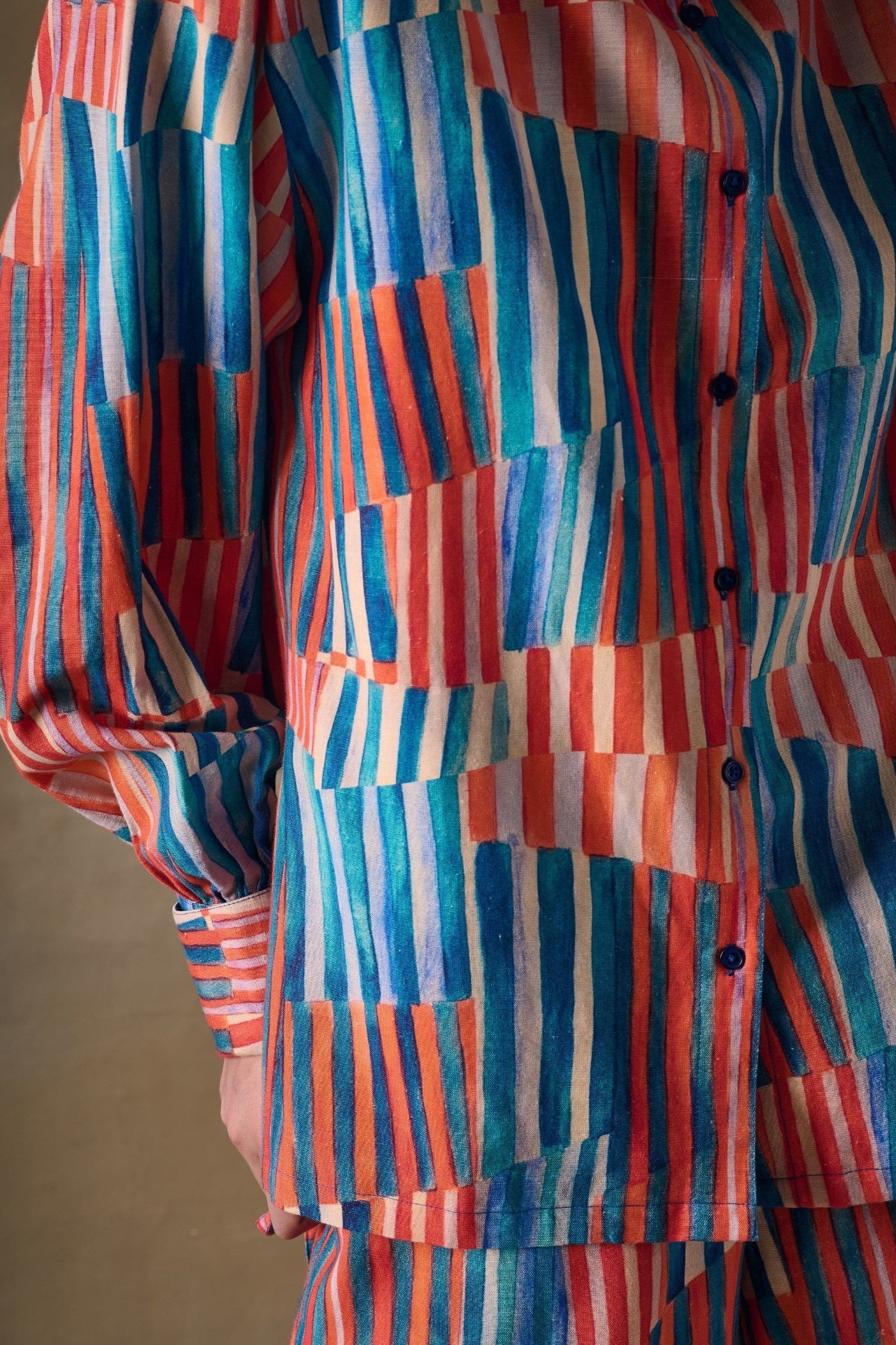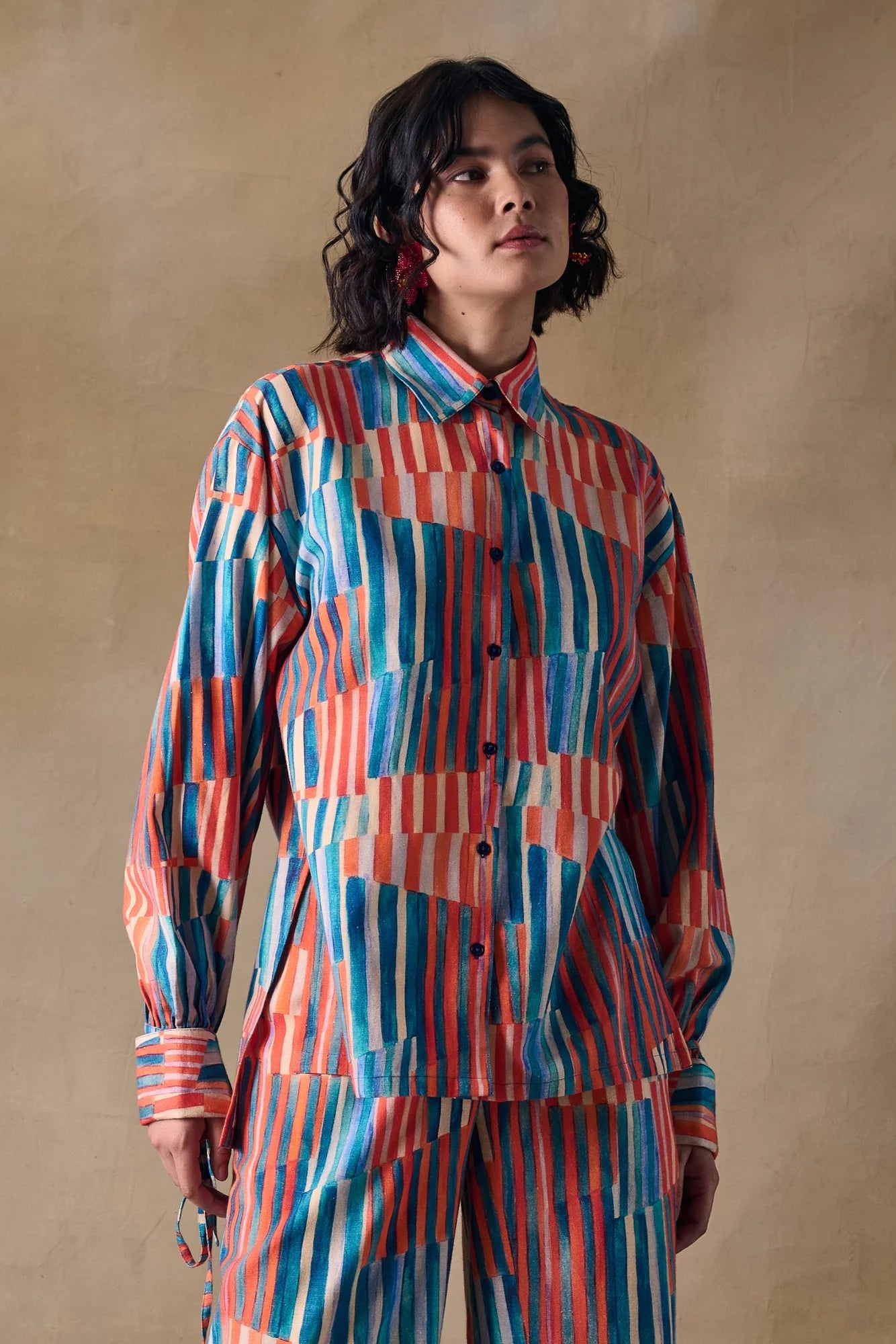 Embrace the essence of effortless elegance with the Asilah Stripe Drawstring Shirt—a harmonious blend of traditional craftsmanship and contemporary design. Crafted from breathable cotton flex fabric, this shirt features hand-drawn stripe prints that evoke the serene landscapes of Asilah.