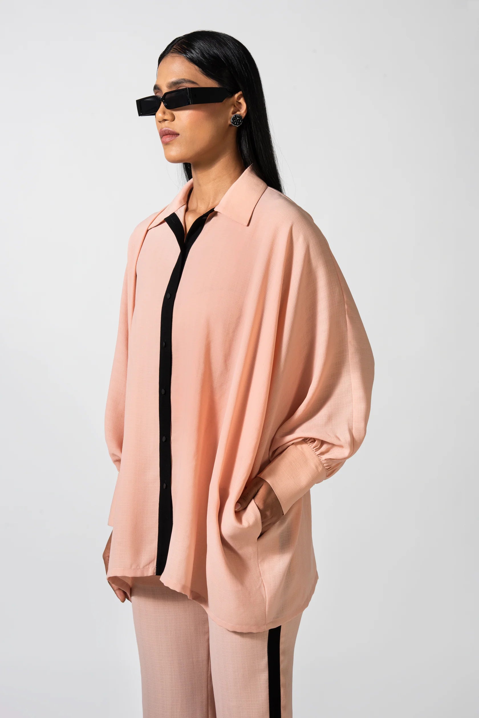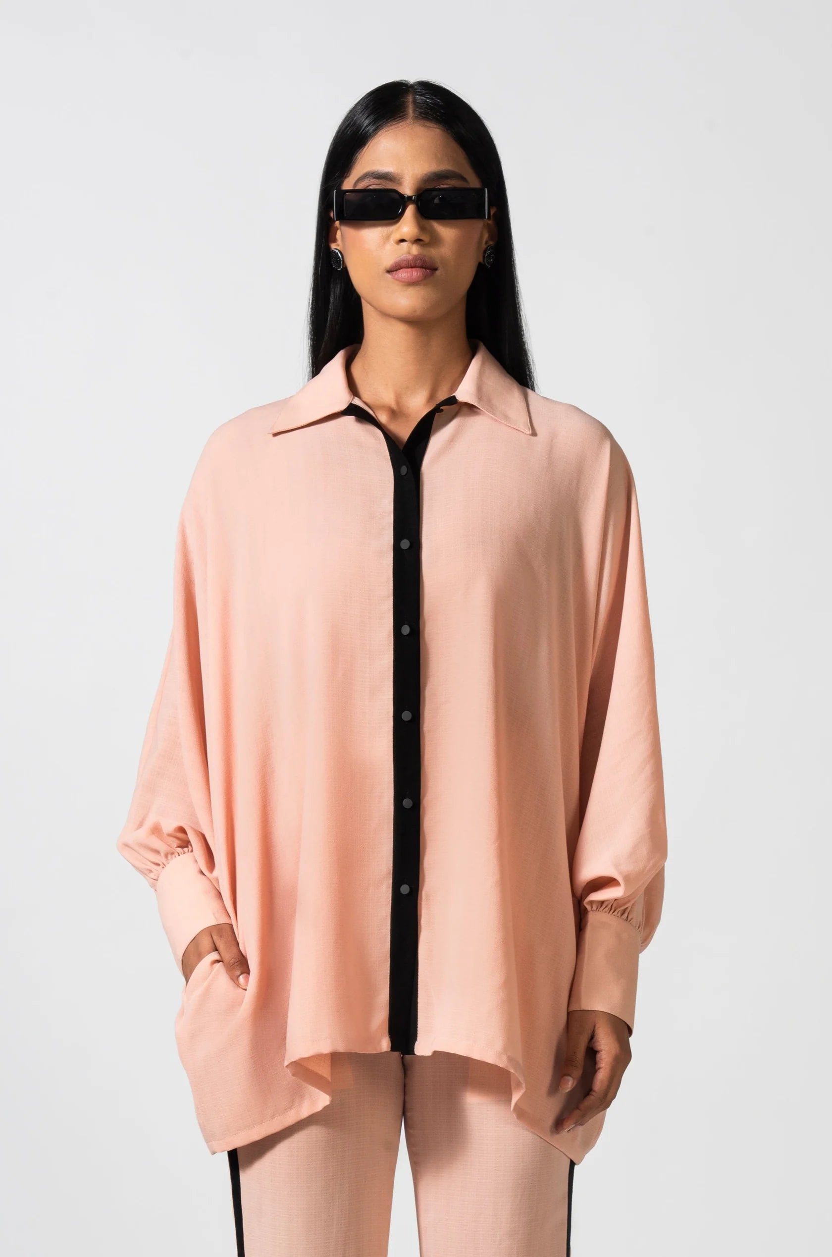 Float through your day in the ethereal charm of the Aurora Ballet Shirt—a ballet-inspired silhouette redefined for modern elegance. Cut from sumptuous Inbox Poplin, this piece is tailored in blush pink (and a playful melting-heart print) to cocoon you in effortless charm. Delicate “butterfly” sleeves flutter with every movement, giving a graceful nod to dancewear, while a crisp collar and long-line button-down hem keep the look grounded and polished