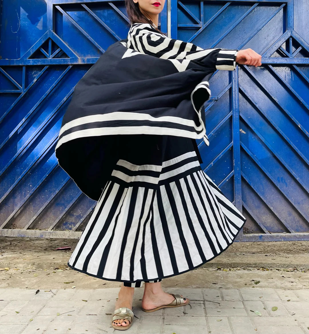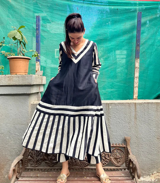 Introducing the Ball Dress—a harmonious blend of traditional craftsmanship and contemporary design. Crafted from luxurious Chanderi fabric, this dress showcases intricate appliqué work. The hand-dyed patterns add depth and character, ensuring each piece is unique.