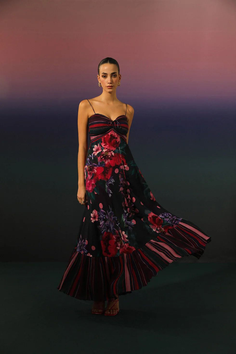 The Bloom Striped Belle Maxi is designed to flatter. Its lightweight fabric ensures comfort, making it an ideal choice for upscale events, garden parties, or any occasion where style is paramount.