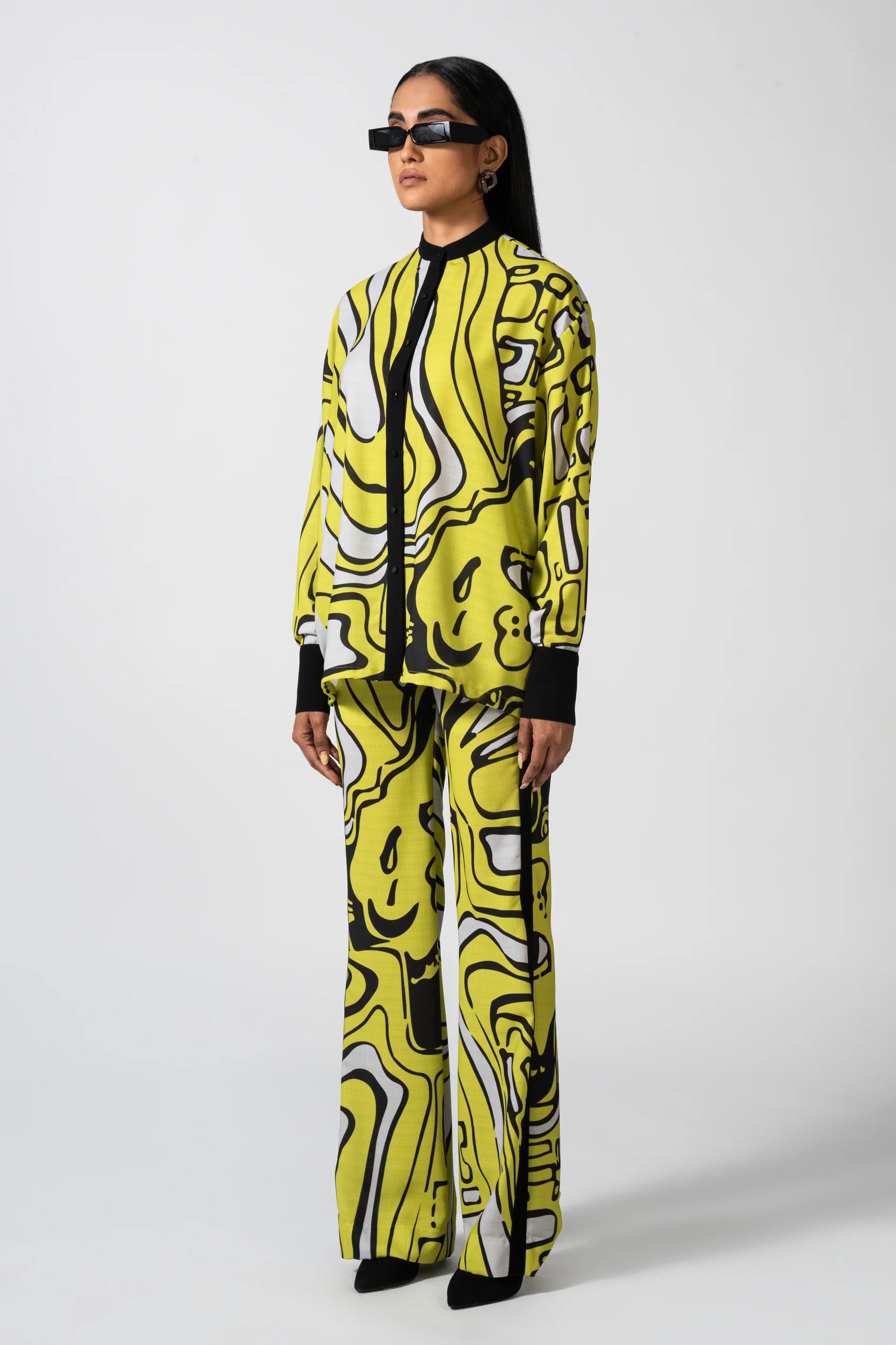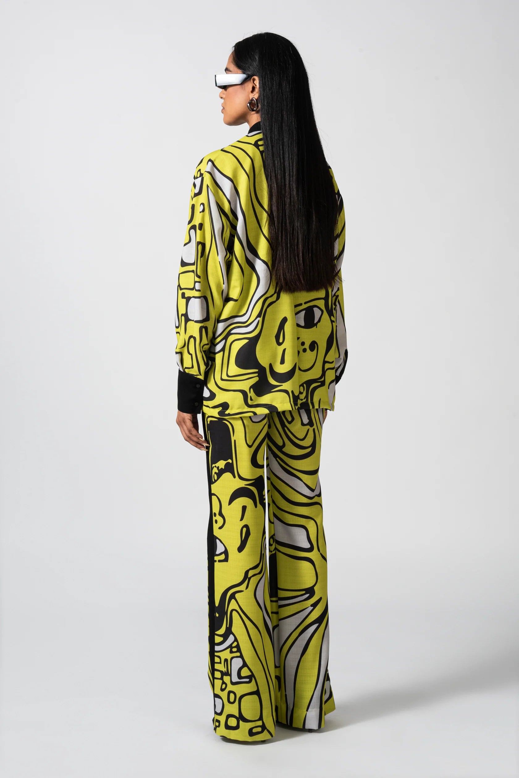 Unleash an electric wave of character and ease with the Luminoso Expression Bell Pants—a signature statement in the Inbox poplin collection. These boot-cut treasures are adorned with cheeky, abstract “funny face” motifs in neon hues that instantly elevate your look with bold charm.