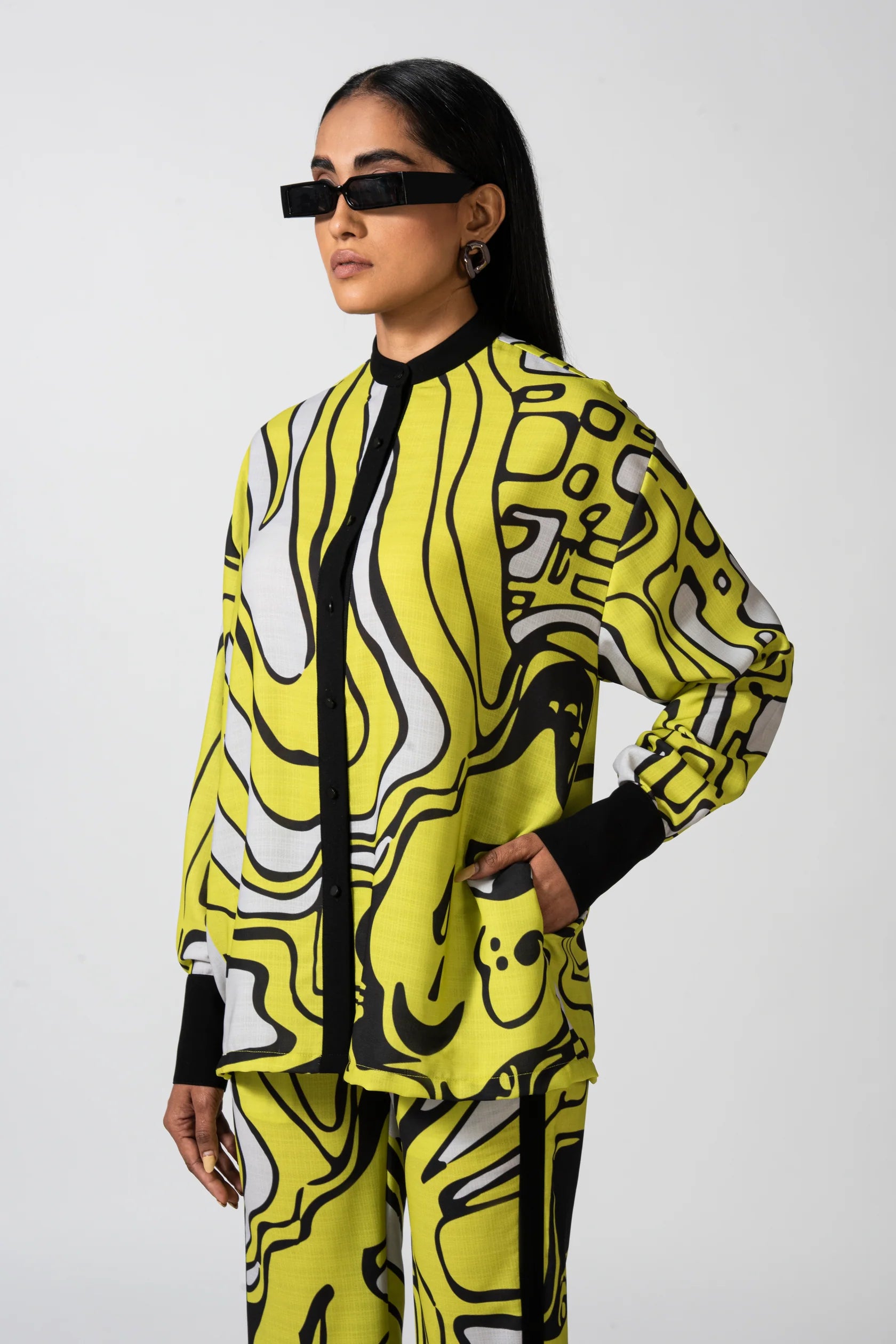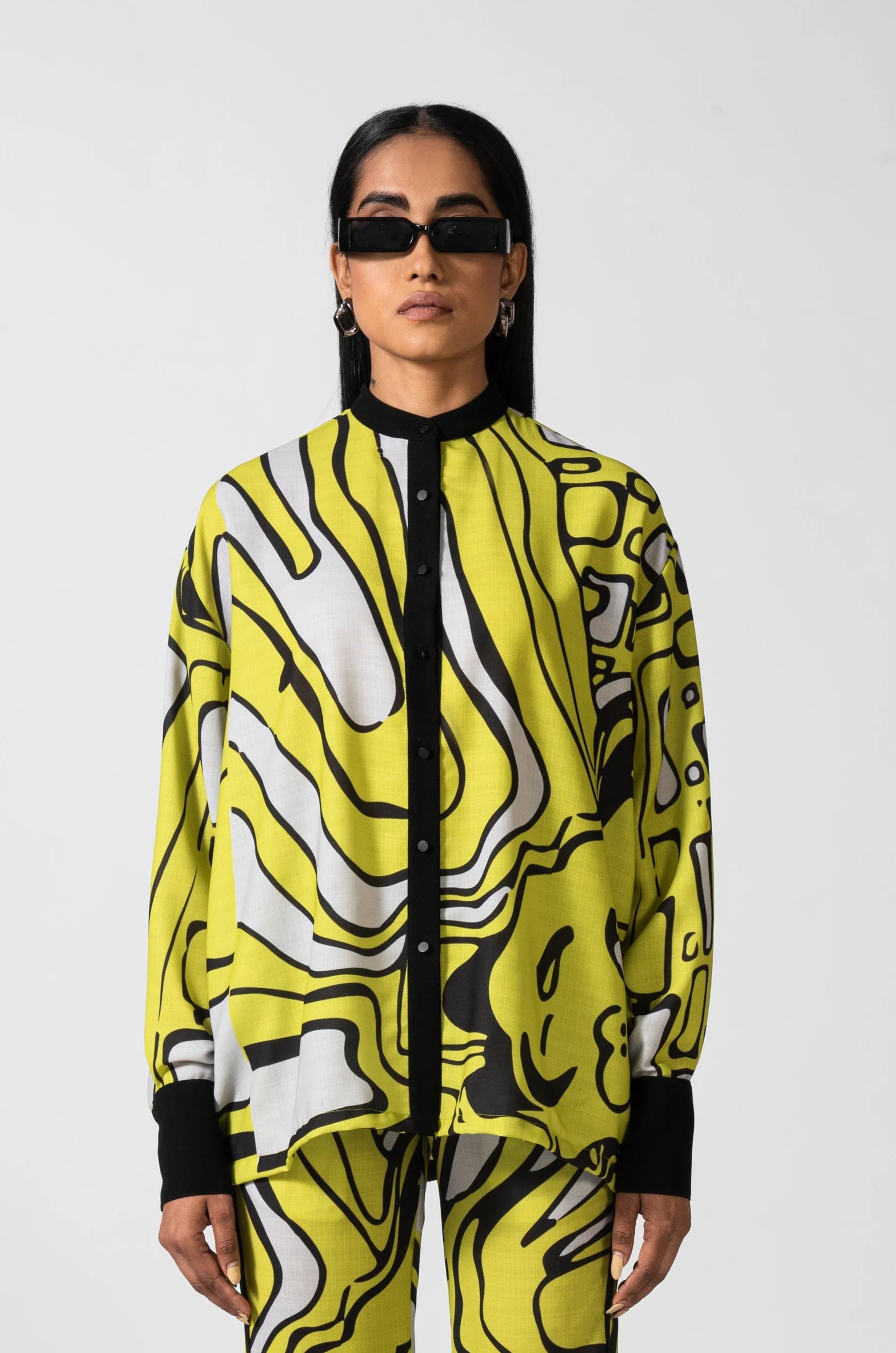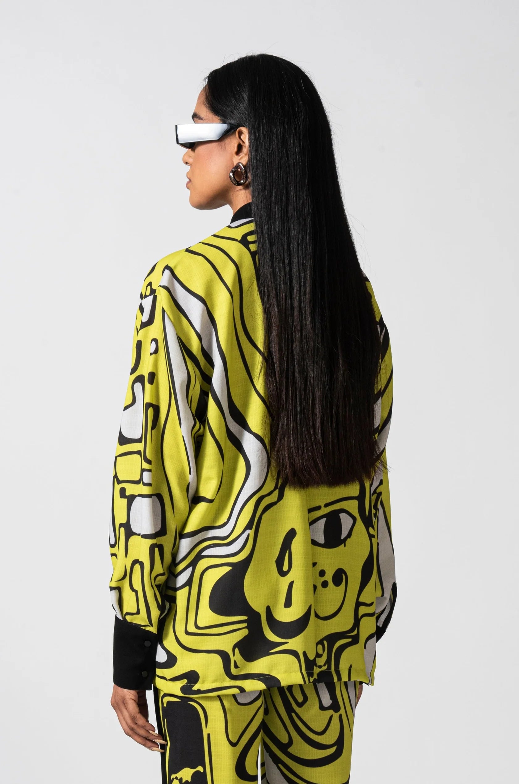 Ignite your wardrobe with charisma: the Luminoso Expression Shirt in neon yellow serves up bold artistry and pure personality. Crafted from crisp Inbox Poplin, it features playful "funny-face" prints, exaggerated balloon sleeves, and a smart band collar—an instant conversation starter that balances high-energy with effortless style