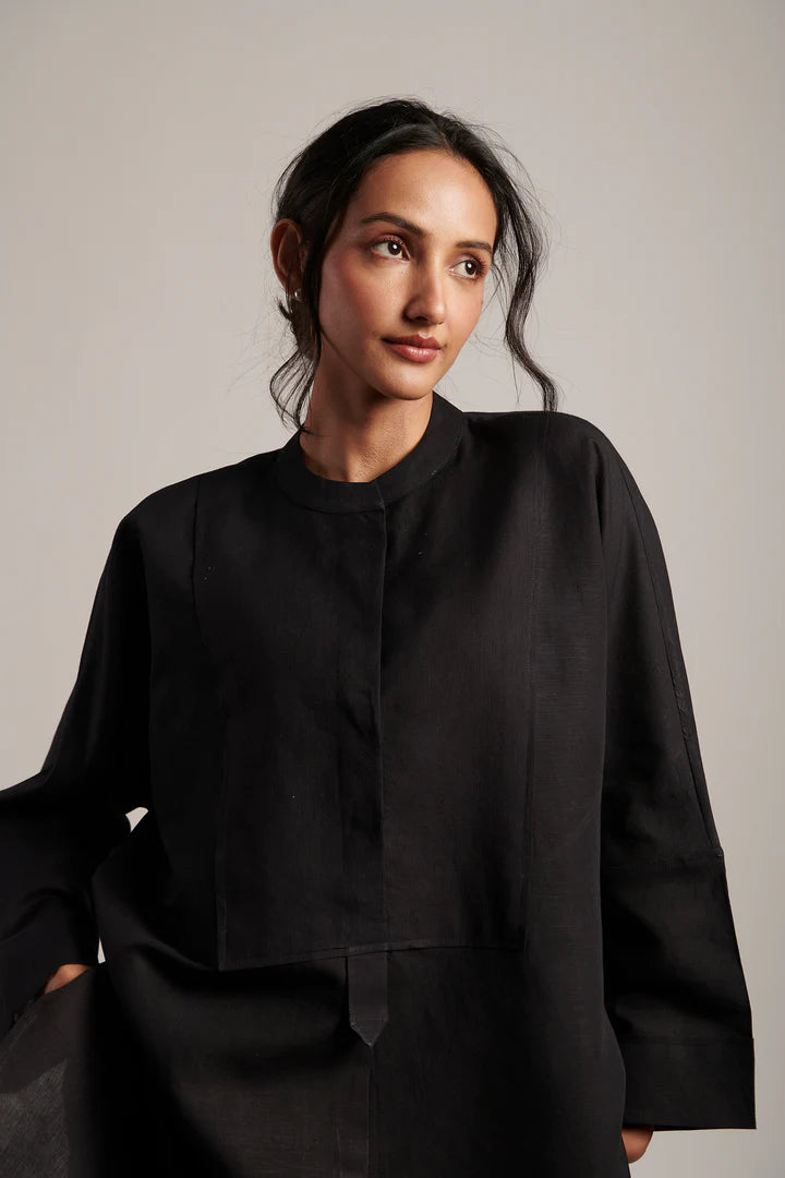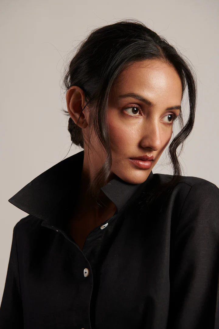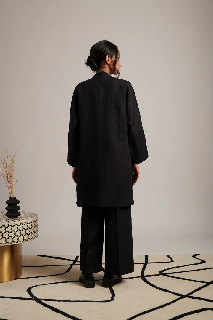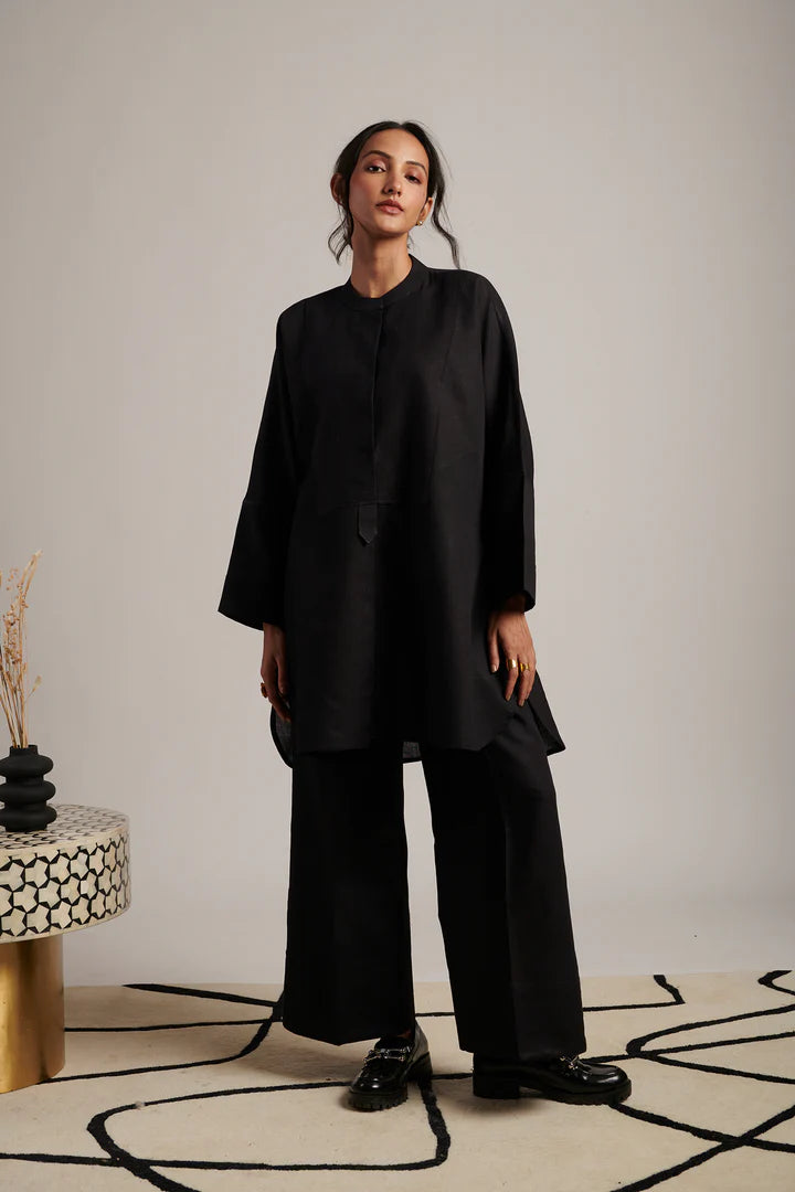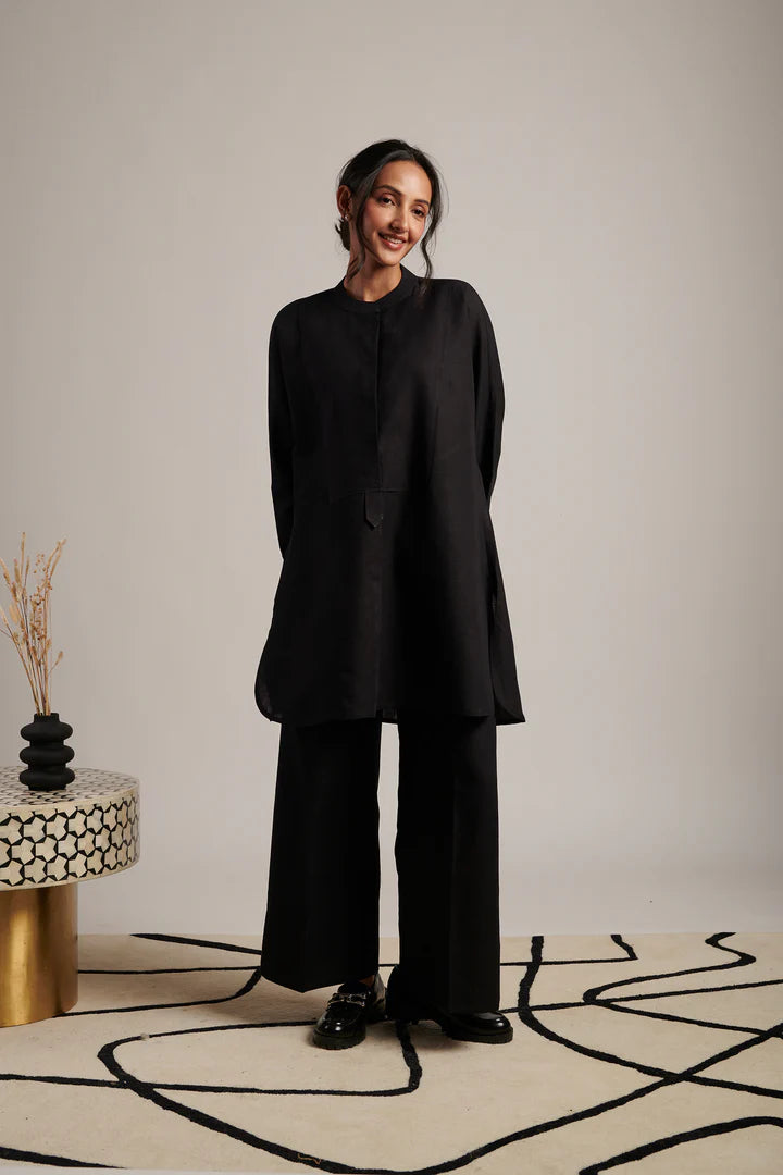 Slip into the sensation of calm and clarity. This two‑piece ensemble—crafted in sumptuously soft 100% linen—feels like tailored ease distilled into couture form. The tunic flows with gentle architecture and minimal buttons, while the trousers offer quiet precision. Together they compose a silhouette of serenity and subtle impact.