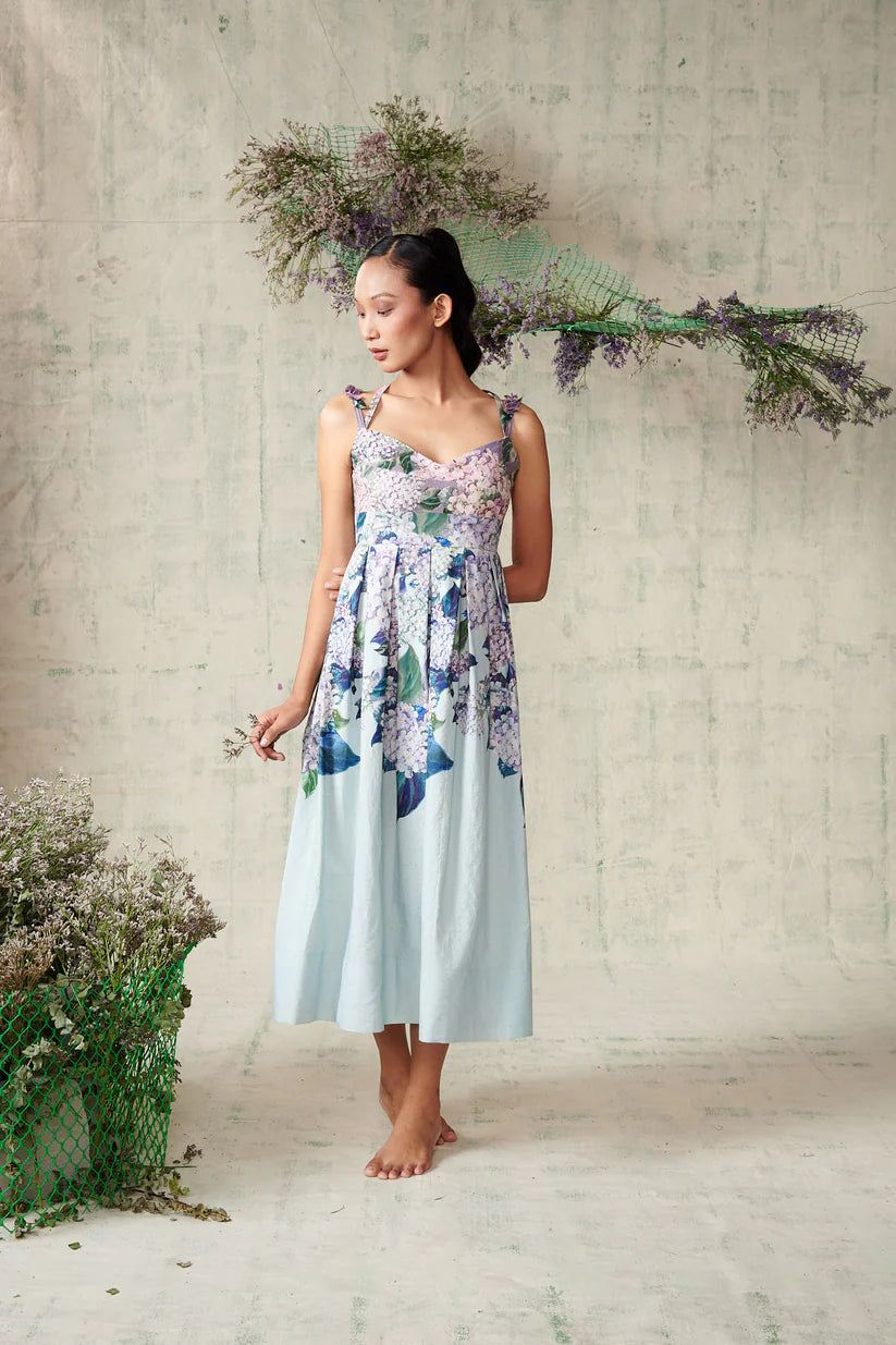 Embrace the essence of natural beauty with the Sky Blue Hydrangea Dress—a harmonious blend of delicate design and effortless elegance. Crafted from breathable khadi fabric, this dress features a soothing sky blue hue adorned with intricate hydrangea prints, exuding femininity and grace.