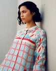 The White Print Play Track Suit makes loungewear luminous. Crafted in sheer, walking-soft double georgette and blend of abstract floral‑geometry prints in fluid ivory tones, this two-piece is elevated with easy versatility. The relaxed top drapes gently, while matching pants slip on with effortless grace—and both offer hidden pockets for practical polish